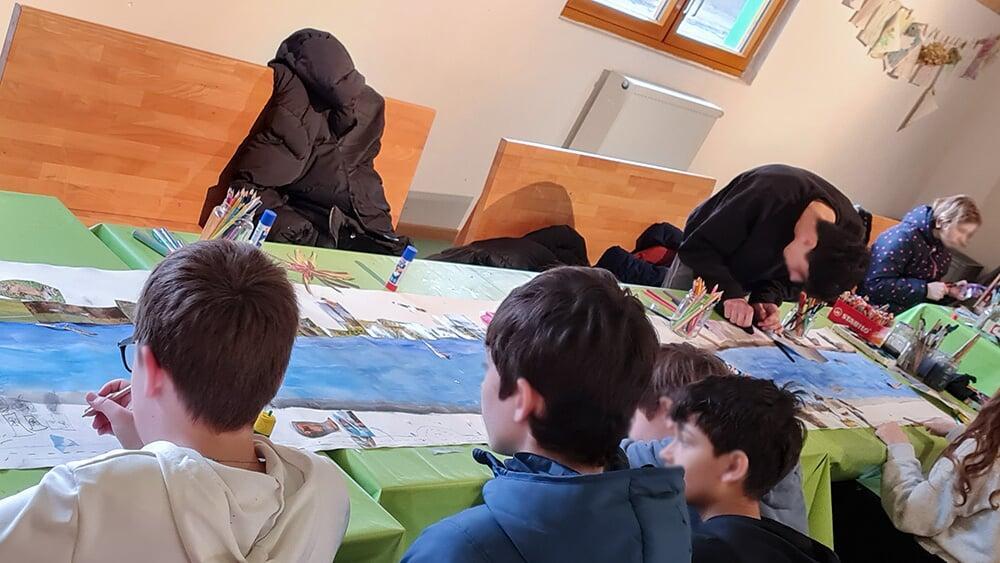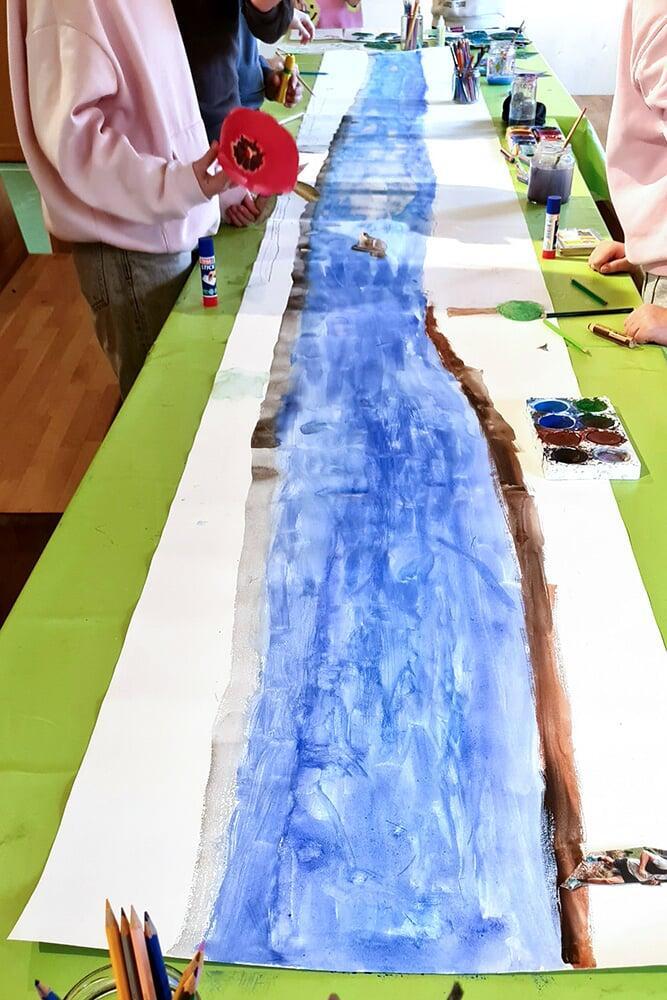 Auf einem beeindruckenden fünf Meter langen Gemeinschaftsbild entstand das „Leben an der Donau“ in all seinen Facetten.