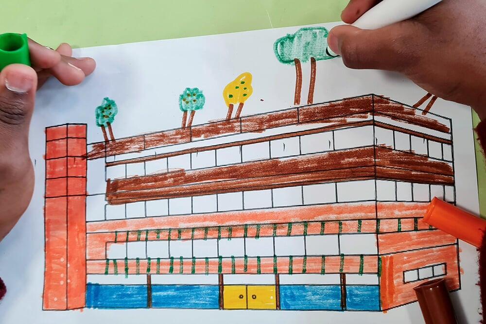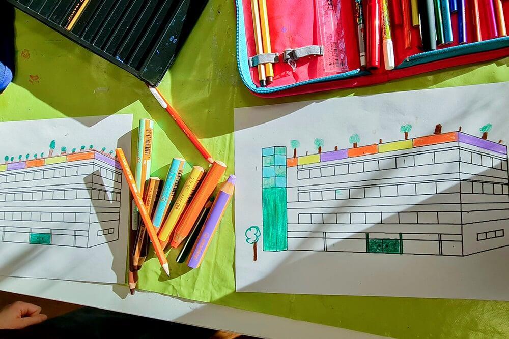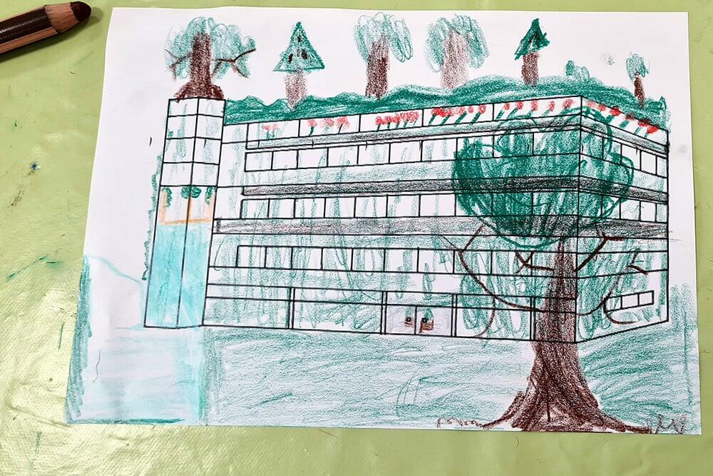 Begrünte Dächer, ungerade Linien und lebendige Farben spielten dabei eine zentrale Rolle – ganz im Sinne des Künstlers.