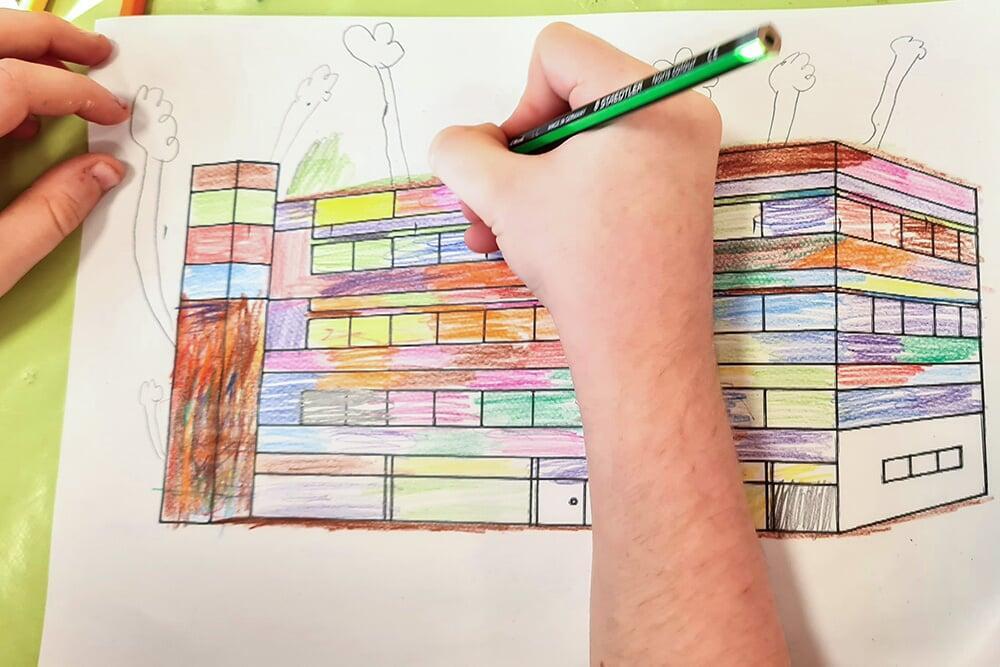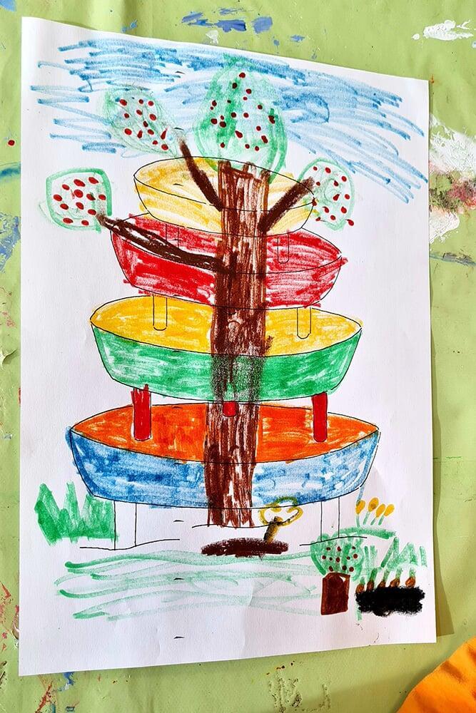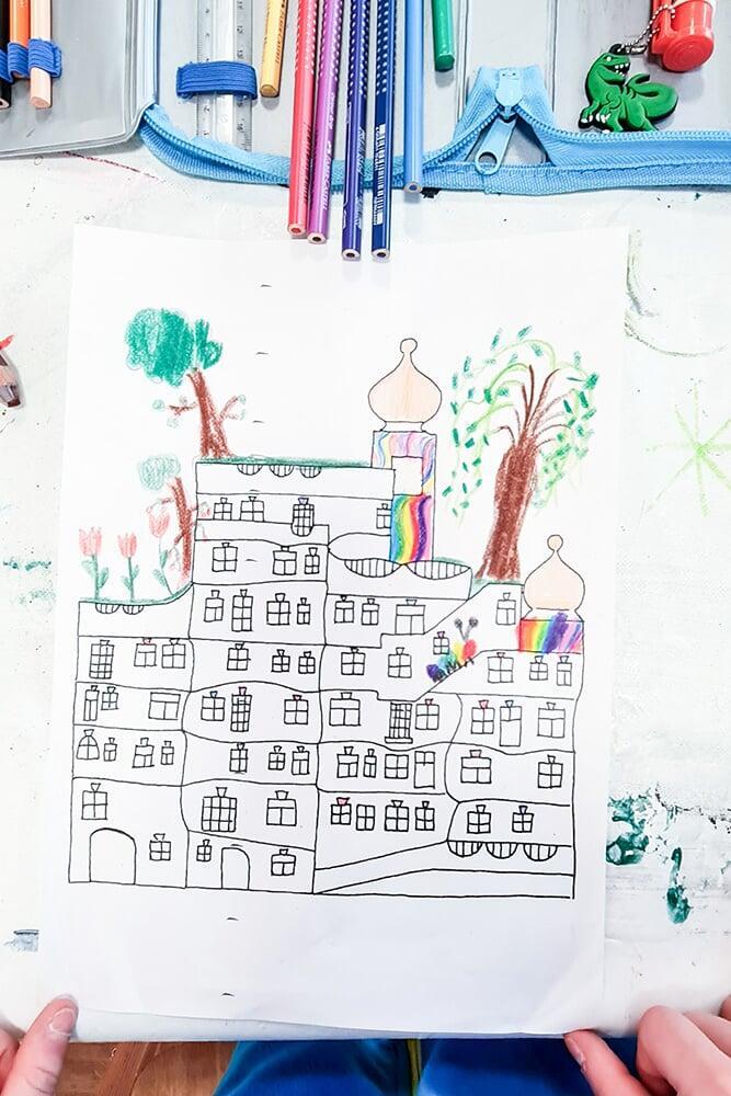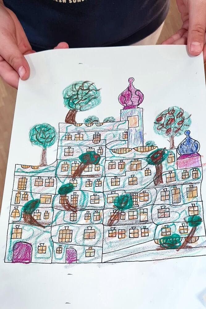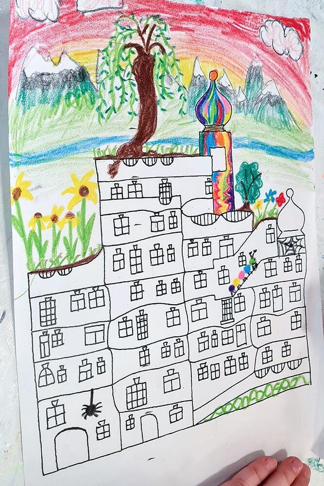 Im Rahmen eines Schulklassenprogramms setzten sich die Schüler:innen aus 4. Klassen intensiv mit Hundertwassers Ideenwelt auseinander.