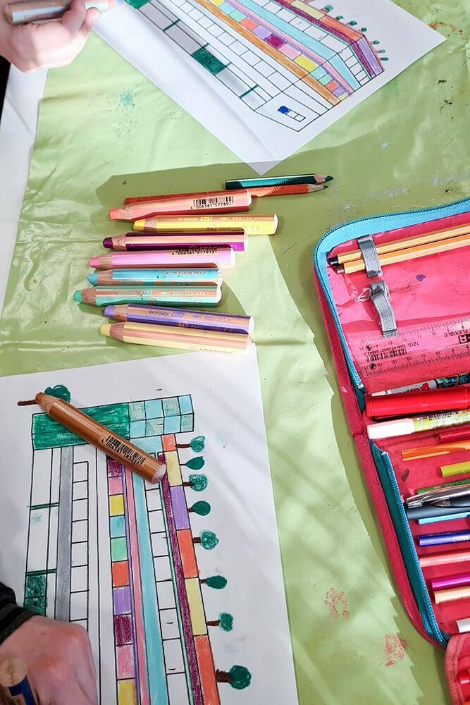 Die Schüler:innen analysierten seine Malerei und experimentierten selbst mit den charakteristischen „dunkelbunten“ Farben,