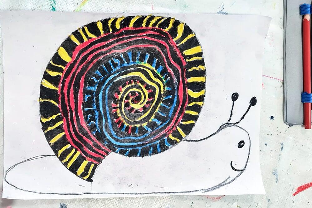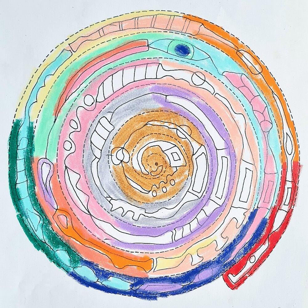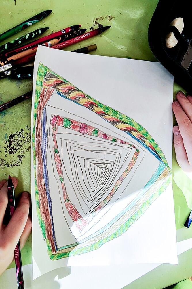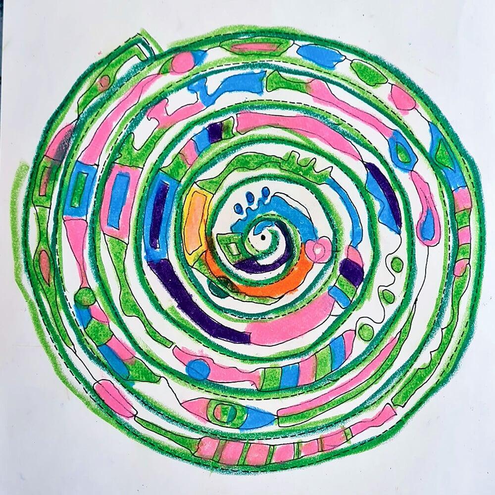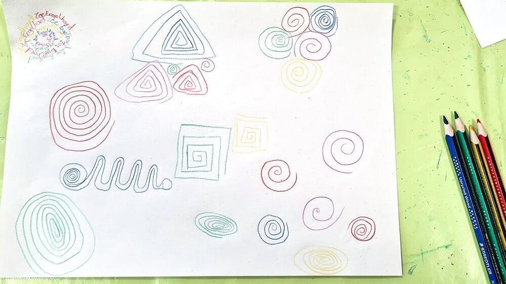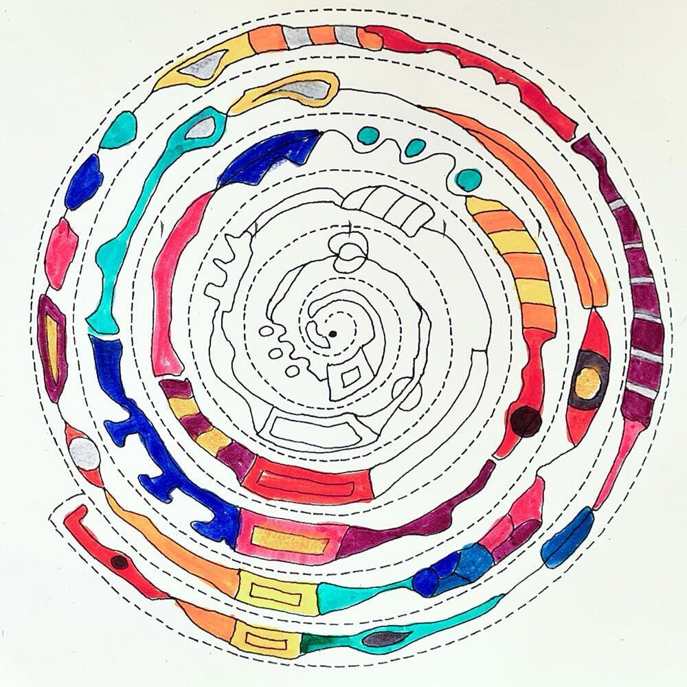 Auch Hundertwassers berühmte Spiralen wurden zeichnerisch erkundet. Sie stehen symbolisch für Wachstum, Bewegung und den Kreislauf des Lebens und boten den Jugendlichen viel Raum für eigene Interpretationen.