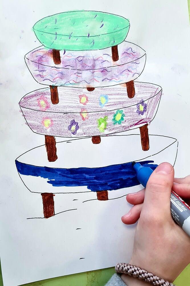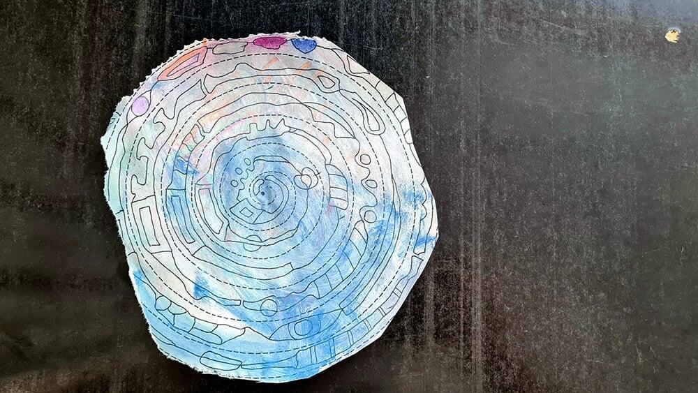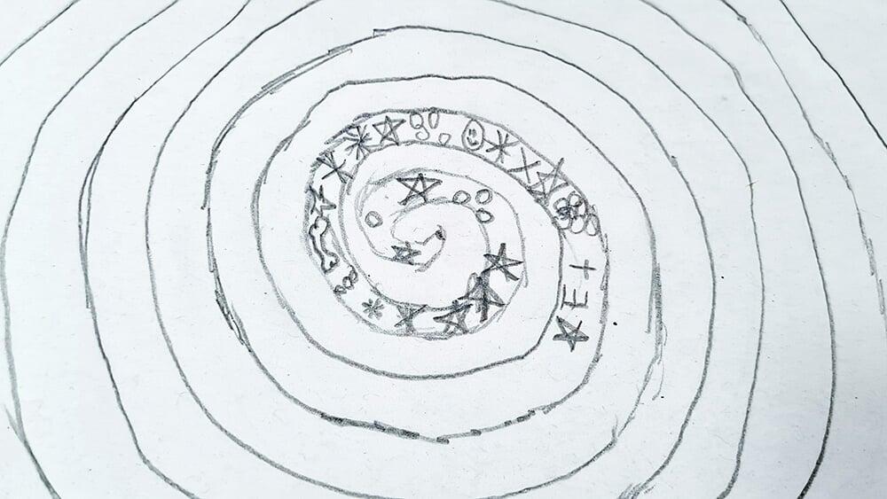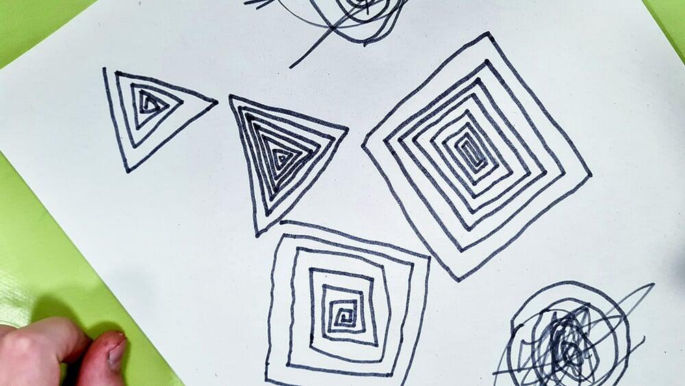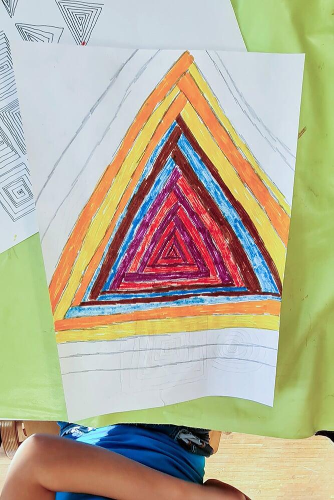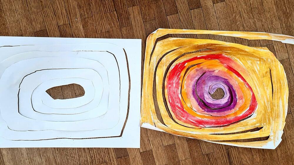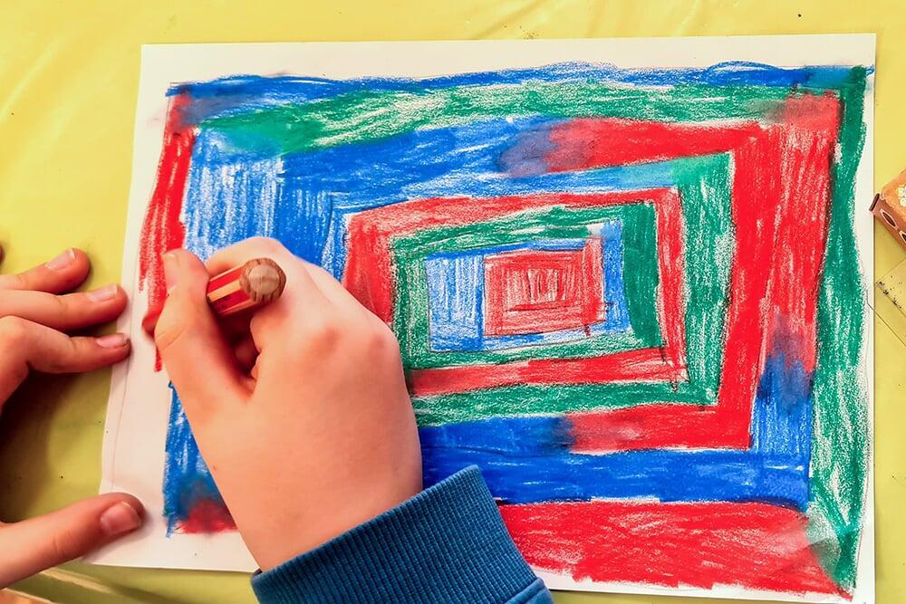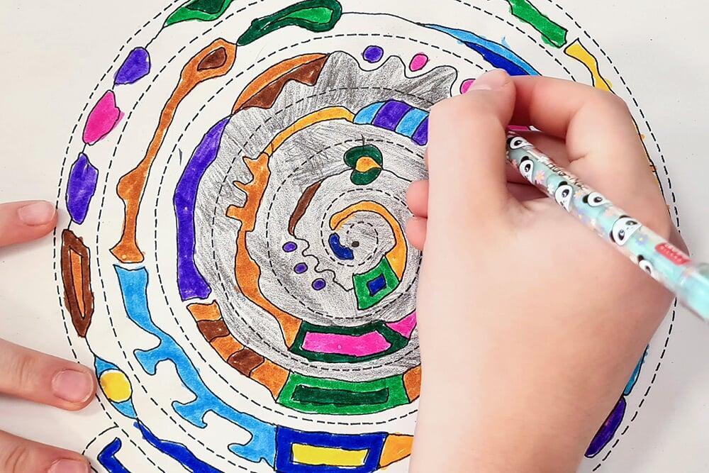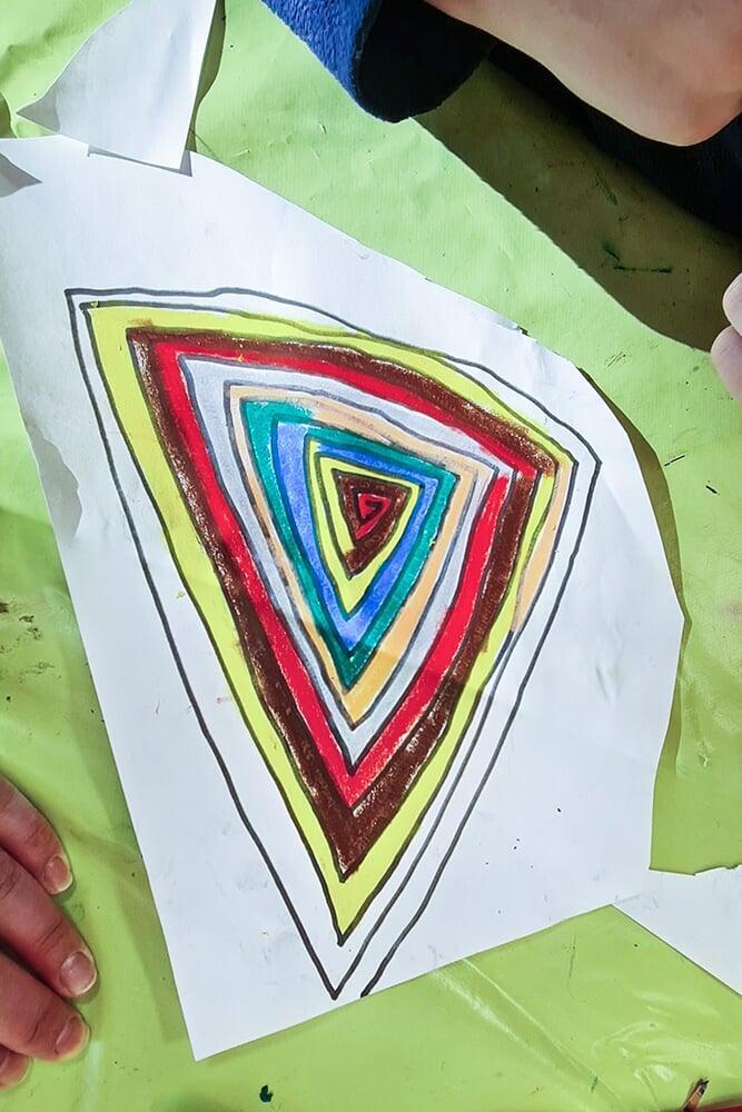 Auch Hundertwassers berühmte Spiralen wurden zeichnerisch erkundet. Sie stehen symbolisch für Wachstum, Bewegung und den Kreislauf des Lebens und boten den Jugendlichen viel Raum für eigene Interpretationen.