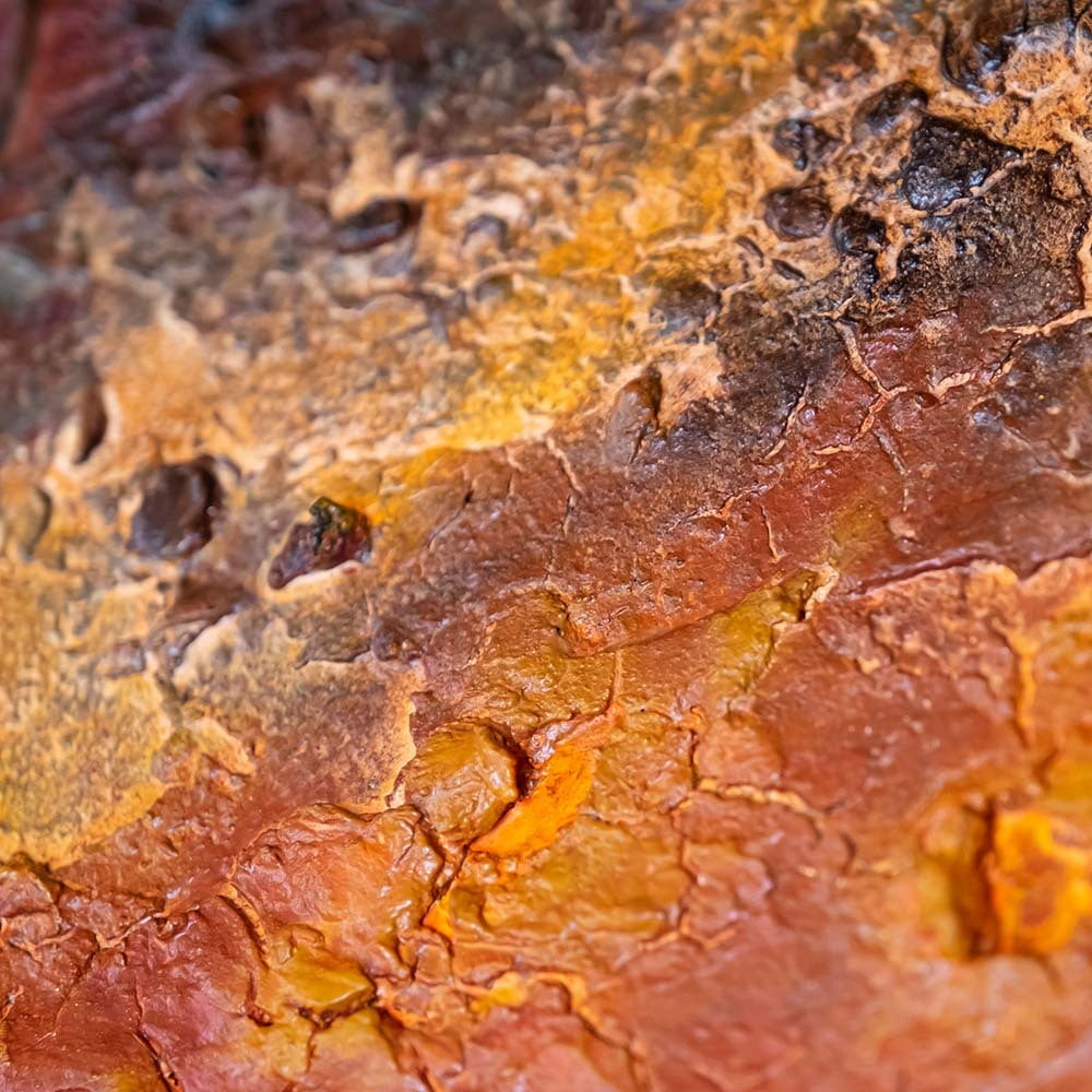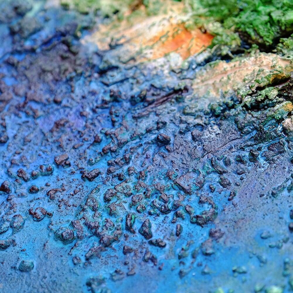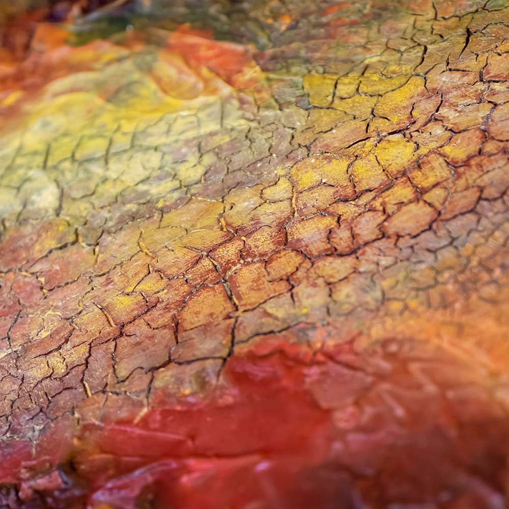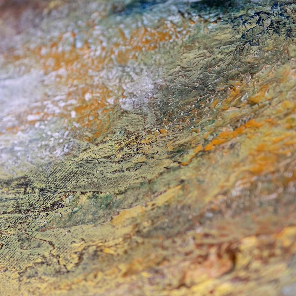 Transparente leuchtende Farbschichten, reduzierte angedeutete Landschaft, farbenfroh.