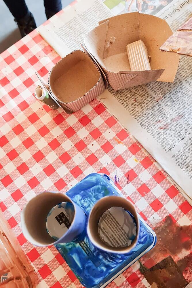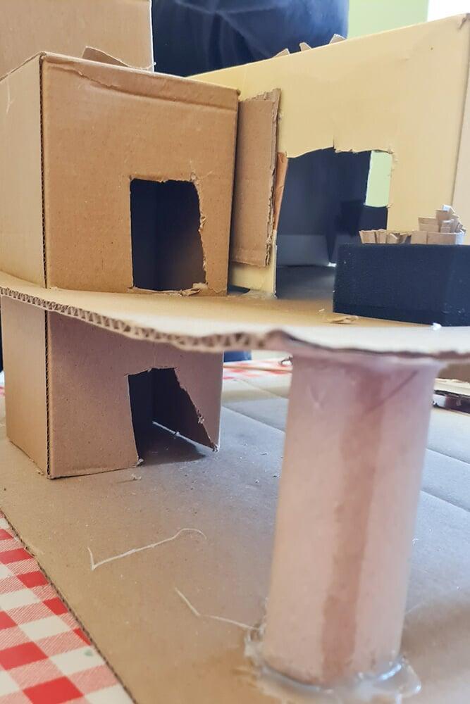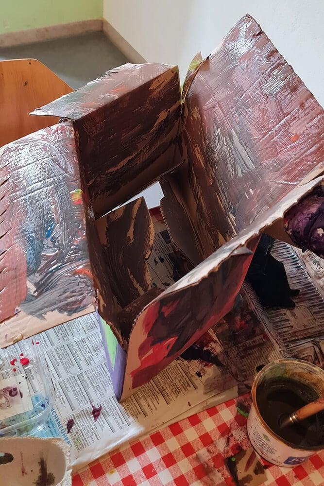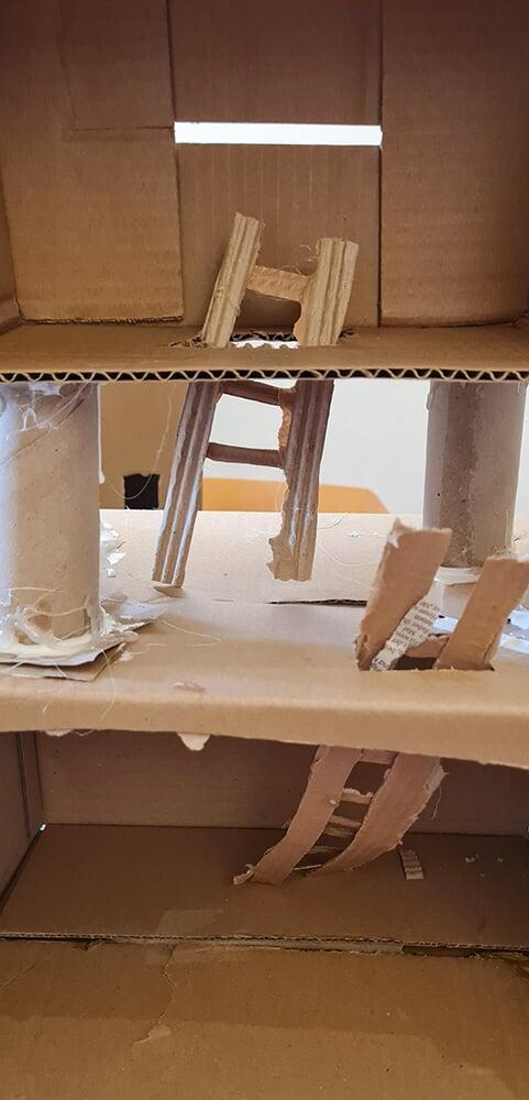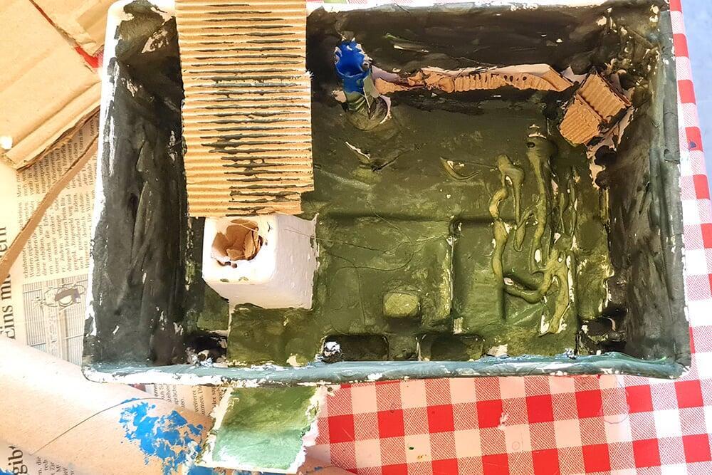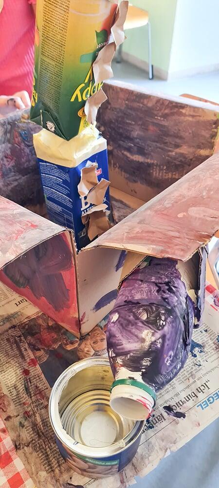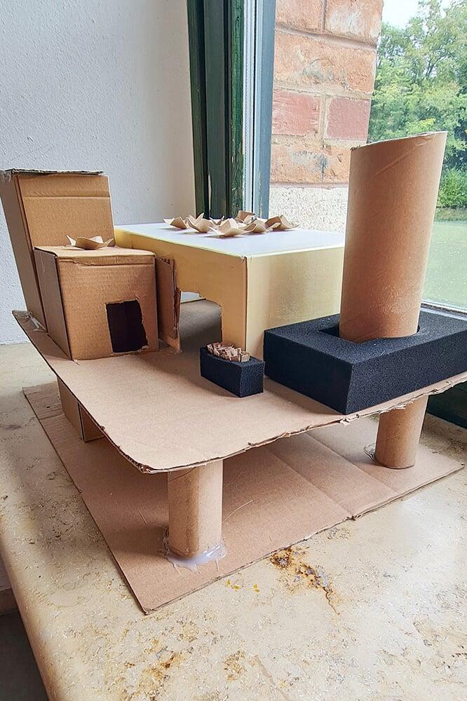 Verpackungskartons, Eierschachteln, Papprollen und allerlei Haushaltsmaterialien wurden zu Bausteinen einer völlig neuen Welt.