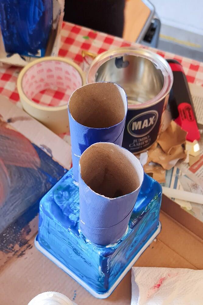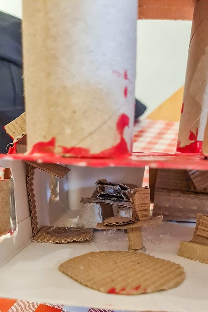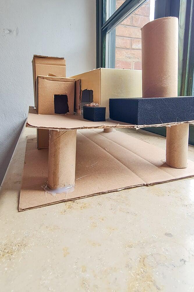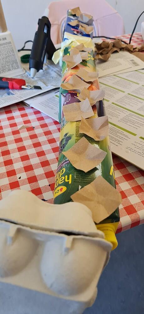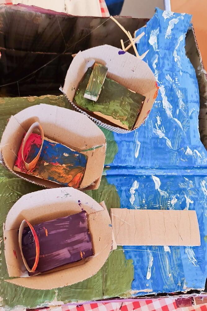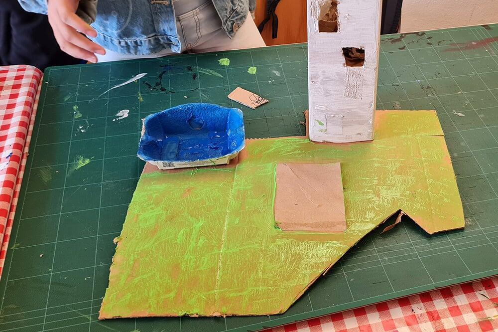 Verpackungskartons, Eierschachteln, Papprollen und allerlei Haushaltsmaterialien wurden zu Bausteinen einer völlig neuen Welt.