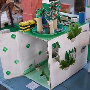 Aus Pappen entstehen visionäre Architekturmodelle für Menschen und Tiere.